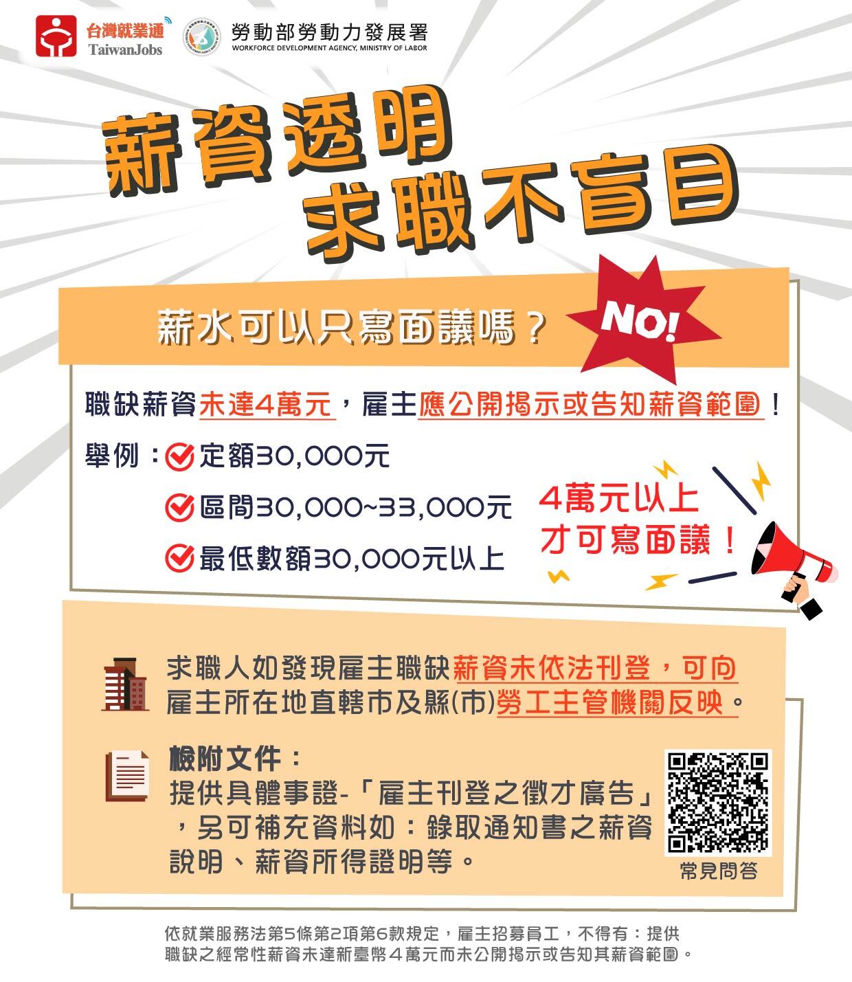 勞動部宣導:「求職時請注意!職缺薪資未達4萬元須公開揭示」