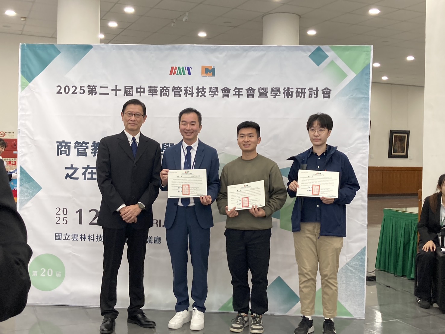 賀!本系許炳堃老師、研究生陳佩瑜、大學部劉建軍論文投稿「2025第二十屆中華商管科技學會年會暨學術研討會」評選獲頒「佳作論文」獎